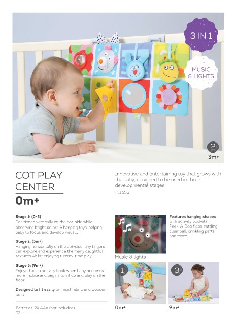 textures whilst enjoying tummy-time play. Music & lights