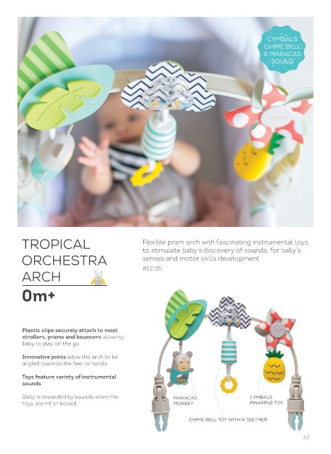 Tropical Flexible pram arch with fascinating instrumental toys,