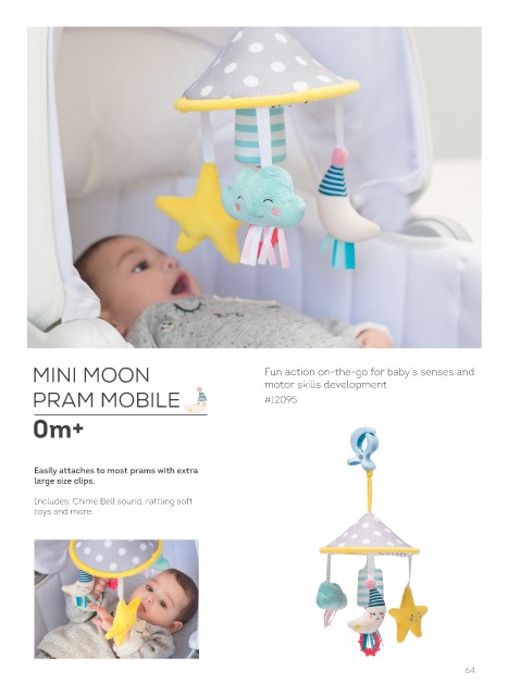 Soft & flexible pram arch with 3 loveable rattling mini moon Fun action on-the-go for baby’s senses and