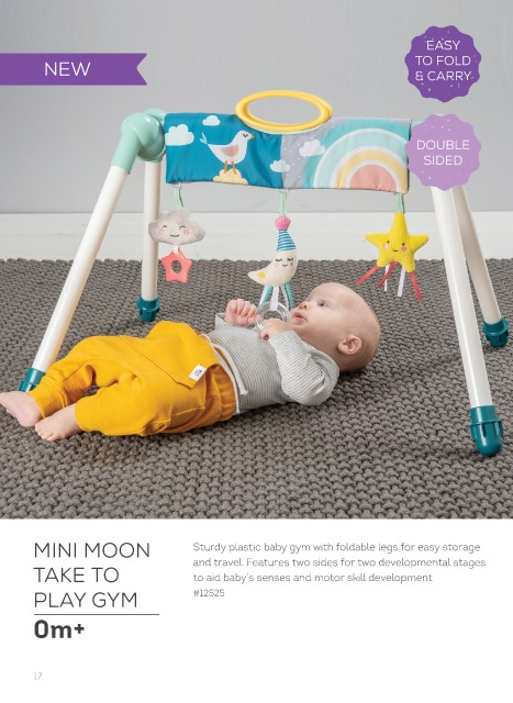 Easy new to fold & carry double sided mini moon Sturdy plastic baby gym with foldable legs for easy storage take to and travel. Features two sides for two developmental stages to aid baby’s senses and motor skill development play gym #12525 0m+ 17