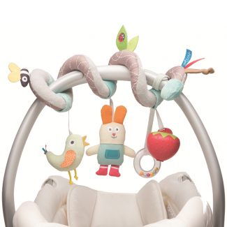 мягкая развивающая игрушка подходит для большинства колясок и кресел-качалок с уникальной коробочкой для пустышки
