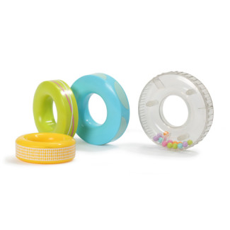 • плоский профиль колец позволяет малышу легко схватить их и играть