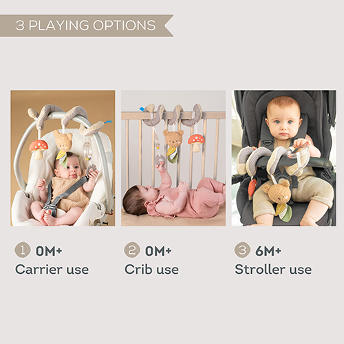 The Bear Hugs Spiral is a multi-sensory spiral toy designed for babies from birth onwards.