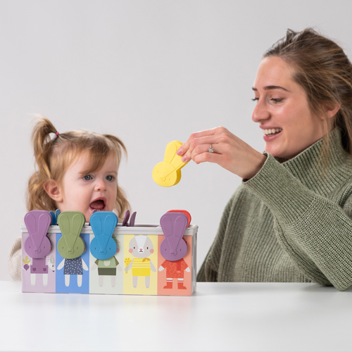 - Stage 3 - toddlers can sort the bunny pegs into the box by color, number, and quantity, helping them to develop their counting skills and number recognition.