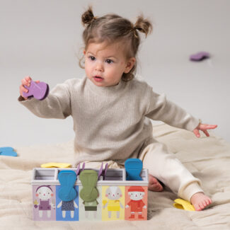 - Stage 2 - toddlers will attach the pegs to the box by color, helping them to develop their color recognition skills.