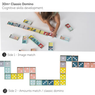 - Huge double-sided domino tiles (6x12cm) fits toddlers’ small hands while matching their developmental stage.