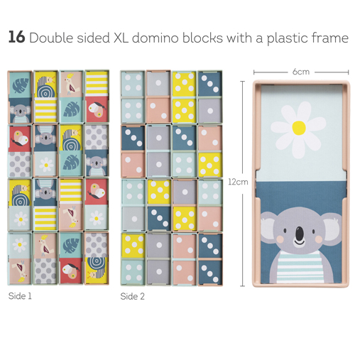 - Comes as a set of 16 double sided domino tiles (12*6cm)
