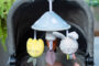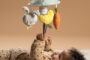 - The mobile also includes a chime bell and a leaf teether, for babies to explore.