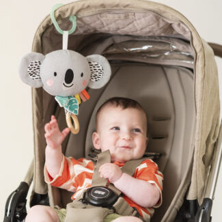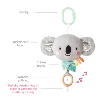 - Easy to fold & carry when out & about – The toy is lightweight and easy to fold. Includes XL plastic ring that attaches to buggies, car seats and cots!