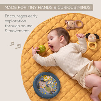 - Multi-Sensory Discovery: Offers a rich variety of auditory and tactile experiences through gentle jingles, soft rattles, clapping sounds, and flowing beads.