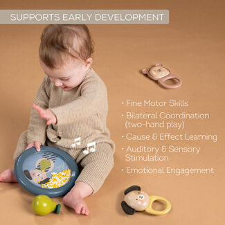 Introduce your little one to the joy of music with the Musical Adventure Kit, an all-in-one starter set thoughtfully curated for babies aged 6 months and up. Designed to support early rhythm awareness and sound recognition, this kit offers a natural, screen-free way for babies to explore sound and movement independently. It is the perfect gift or everyday play set to encourage a healthy, musical journey from the very start.