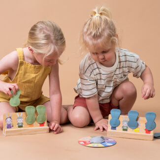 - It is designed to help toddlers develop social “taking turns” skills, fine motor skills, color recognition, and counting abilities through play.