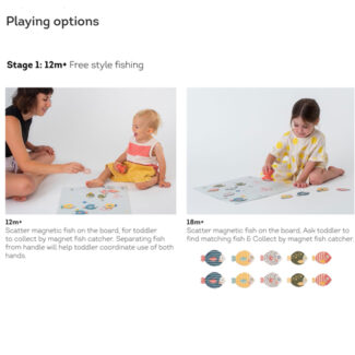 - Comes as a set of 10 double sided baby -safe magnetic fish & a double sided play board including a magic fish catcher unit.
