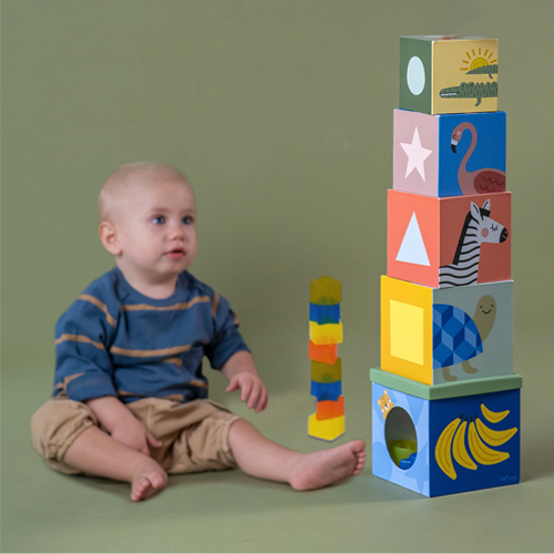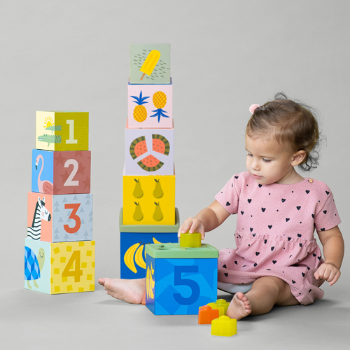 - Stacking stack the blocks by size. Line up faces by number, color, shape size or animal on top of each other. They can even be knocked down for endless fun.