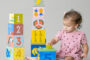 - Counting – put blocks one on top of the other & learn to count and identify the number to match