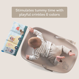 - Developmental Play – Doubles as a tummy time toy to support sensory & motor skills.