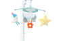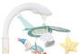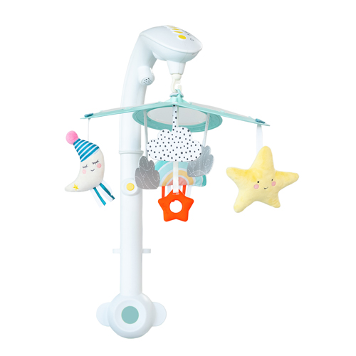 • Star shapes are projected onto the light blue canopy that rotate over the crib.