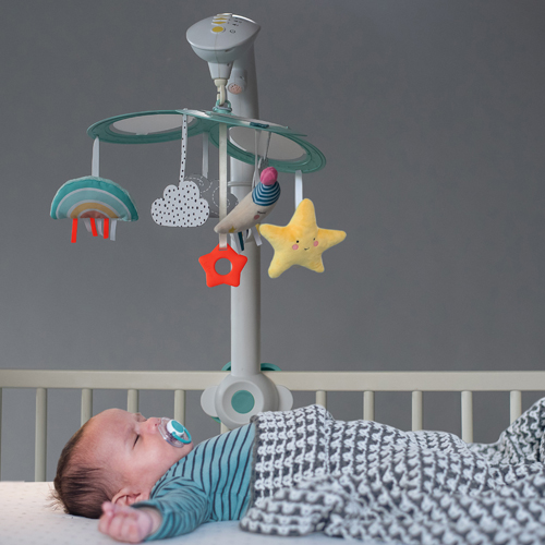 • A combination of music, movement and lights calms baby and helps develop newborns senses, cognitive skills and emotional intelligence.