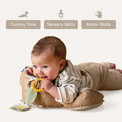 • The pillow encourages baby to practice tummy time from a young age with minimum frustration.